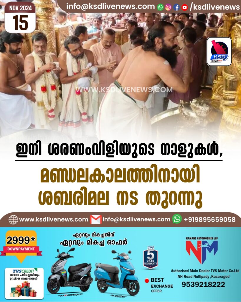 ഇനി ശരണംവിളിയുടെ നാളുകള്, മണ്ഡലകാലത്തിനായി ശബരിമല നട തുറന്നു