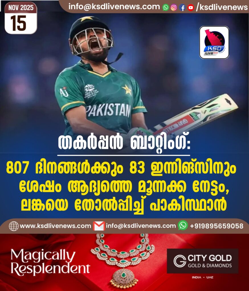 തകർപ്പൻ ബാറ്റിംഗ്: 807 ദിനങ്ങള്ക്കും 83 ഇന്നിങ്സിനും ശേഷം ആദ്യത്തെ മൂന്നക്ക നേട്ടം, ലങ്കയെ തോല്പ്പിച്ച് പാകിസ്ഥാൻ