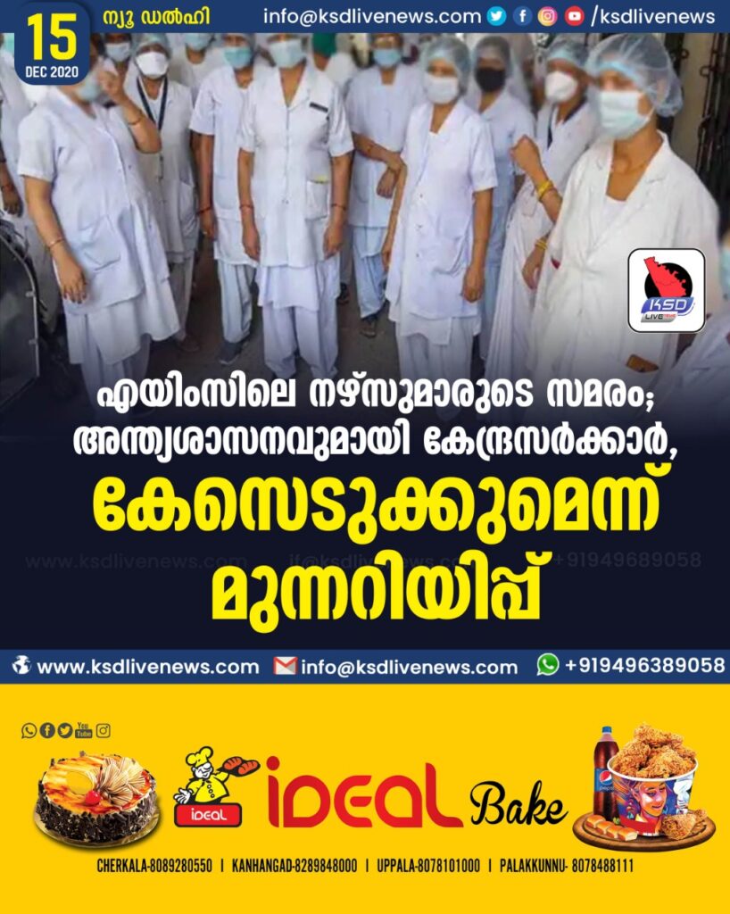എയിംസിലെ നഴ്സുമാരുടെ സമരം ; അന്ത്യശാസനവുമായി കേന്ദ്രസർക്കാർ , കേസെടുക്കുമെന്ന് മുന്നറിയിപ്പ്