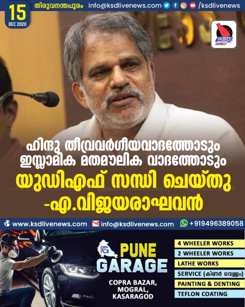 ഹിന്ദു തീവ്രവര്ഗീയവാദത്തോടും ഇസ്ലാമിക മതമൗലിക വാദത്തോടും യുഡിഎഫ് സന്ധി ചെയ്തു-എ.വിജയരാഘവന്