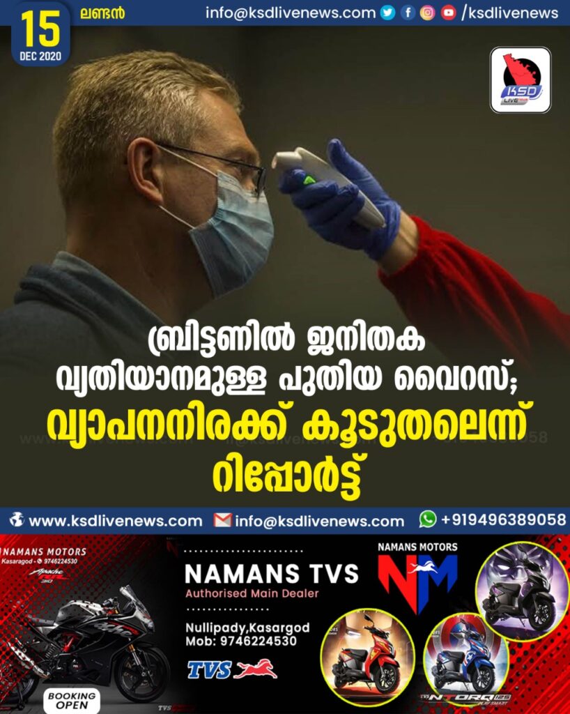 ബ്രിട്ടണില് ജനിതക വ്യതിയാനമുള്ള പുതിയ വൈറസ്; വ്യാപനനിരക്ക് കൂടുതലെന്ന് റിപ്പോര്ട്ട്