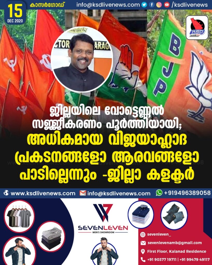 ജില്ലയിലെ വോട്ടെണ്ണൽ സജ്ജീകരണം പൂർത്തിയായി ; അധികമായ വിജയാഹ്ലാദ പ്രകടനങ്ങളോ ആരവങ്ങളോ പാടില്ലെന്നും – ജില്ലാ കളക്ടർ