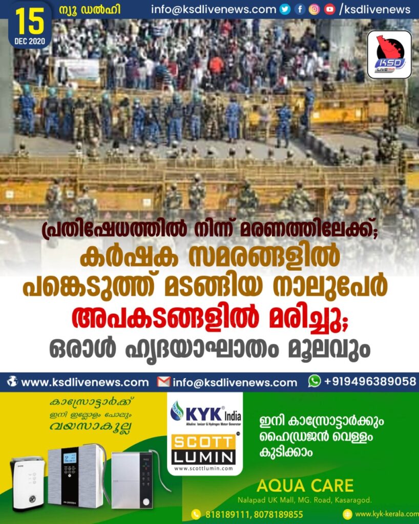 പ്രതിഷേധത്തിൽ നിന്ന് മരണത്തിലേക്ക് ; കര്ഷക സമരങ്ങളില് പങ്കെടുത്ത് മടങ്ങിയ നാലുപേര് അപകടങ്ങളില് മരിച്ചു; ഒരാള് ഹൃദയാഘാതം മൂലവും
