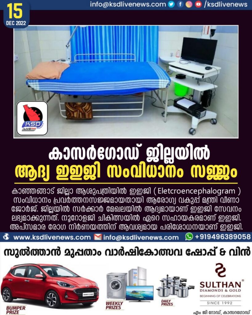 കാസര്ഗോഡ് ജില്ലയില് ആദ്യ ഇഇജി സംവിധാനം സജ്ജം