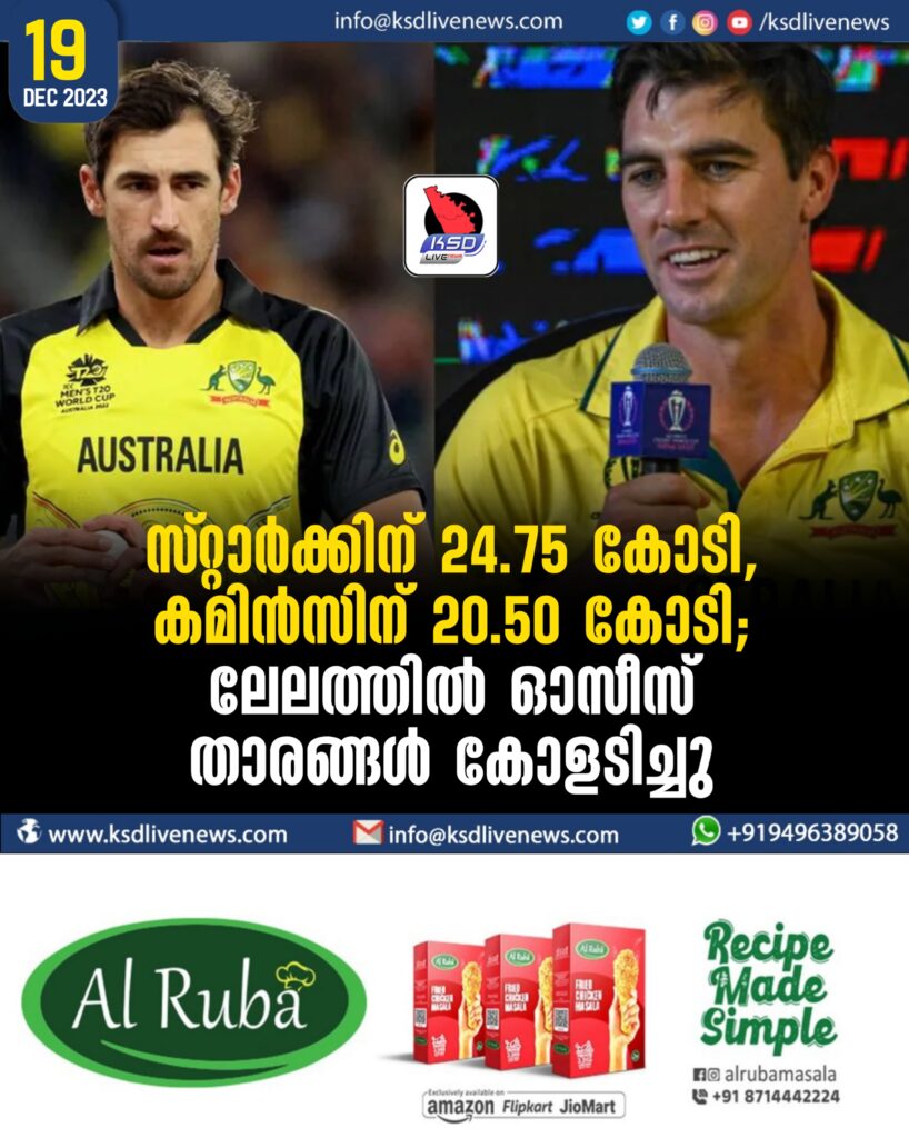 സ്റ്റാര്ക്കിന് 24.75 കോടി, കമിന്സിന് 20.50 കോടി; ലേലത്തില് ഓസീസ് താരങ്ങള് ‘കോളടിച്ചു
