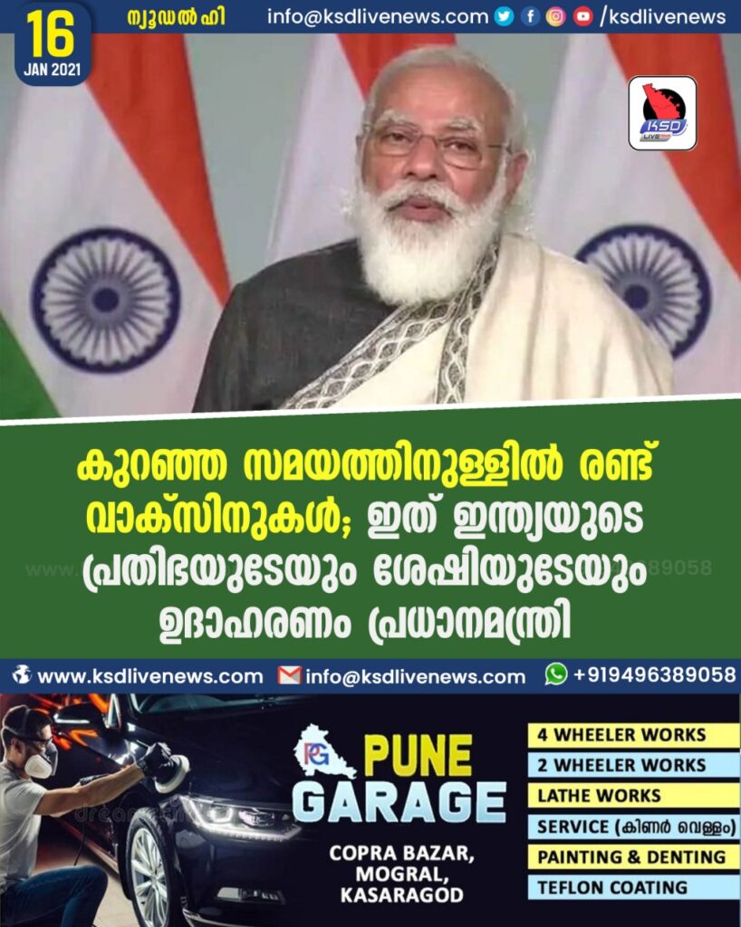 കുറഞ്ഞ സമയത്തിനുള്ളില് രണ്ട് വാക്സിനുകള്; ഇത് ഇന്ത്യയുടെ പ്രതിഭയുടേയും ശേഷിയുടേയും ഉദാഹരണം-പ്രധാനമന്ത്രി