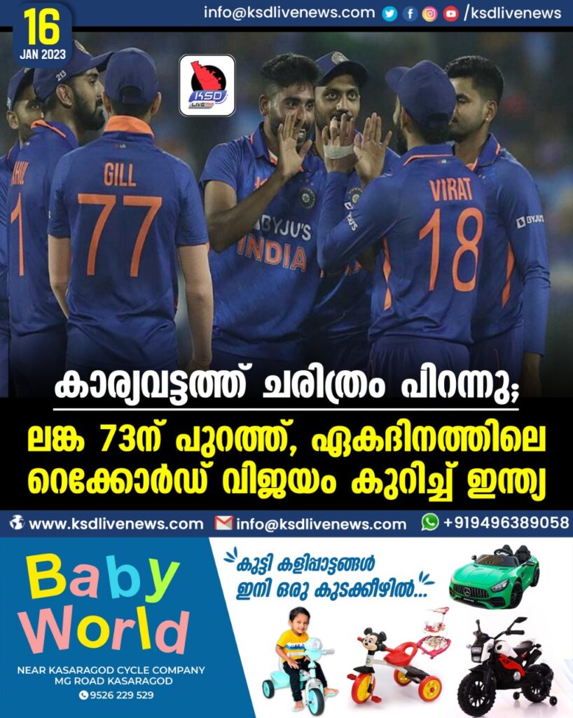 കാര്യവട്ടത്ത് ചരിത്രം പിറന്നു; ലങ്ക 73ന് പുറത്ത്, ഏകദിനത്തിലെ റെക്കോർഡ് വിജയം കുറിച്ച് ഇന്ത്യ