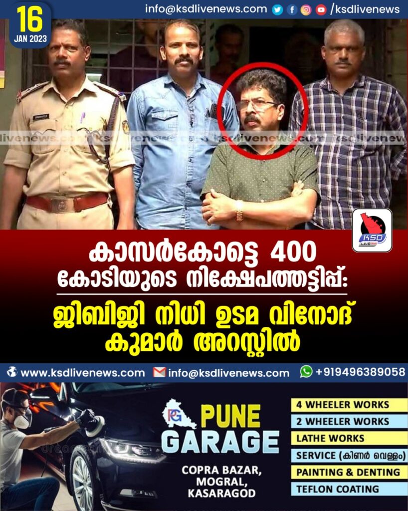 കാസർകോട്ടെ 400 കോടിയുടെ നിക്ഷേപത്തട്ടിപ്പ്: ജിബിജി നിധി ഉടമ വിനോദ് കുമാർ അറസ്റ്റിൽ