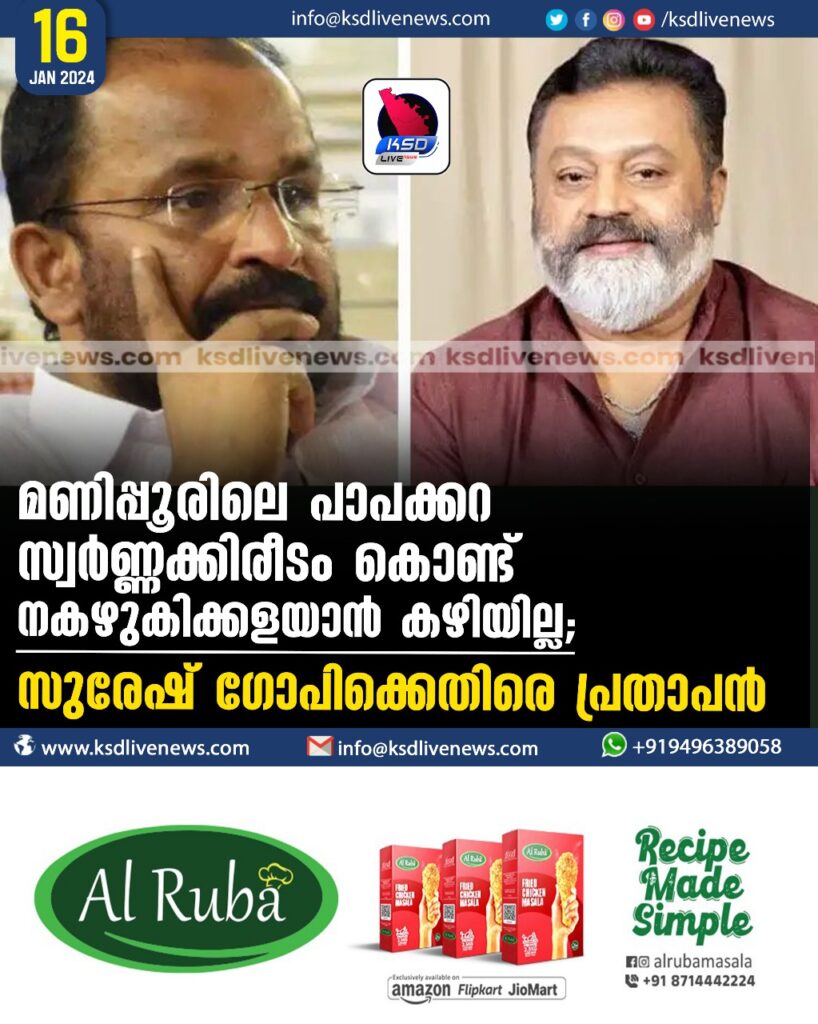 മണിപ്പൂരിലെ പാപക്കറ സ്വര്‍ണ്ണക്കിരീടം കൊണ്ട് കഴുകിക്കളയാൻ കഴിയില്ല’, സുരേഷ് ഗോപിക്കെതിരെ പ്രതാപൻ