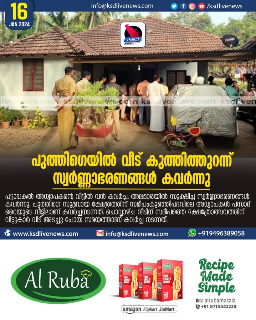 പുത്തിഗെയിൽ വീട് കുത്തിത്തുറന്ന് സ്വര്ണ്ണാഭരണങ്ങള് കവര്ന്നു