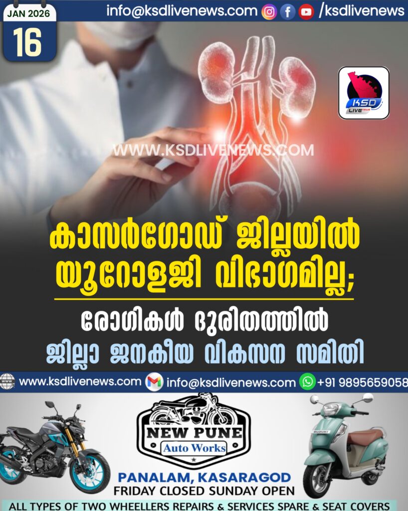 കാസർഗോഡ് : ജില്ലയിൽ ഒരു സർക്കാർ ആശുപത്രിയിലും യൂറോളജി (Urology) വിഭാഗം നിലവിലില്ലാത്തത് ആയിരക്കണക്കിന് രോഗികളെ കടുത്ത ദുരിതത്തിലാക്കുകയാണെന്ന് പരാതി. വൃക്കരോഗങ്ങൾ, മൂത്രക്കല്ല്, പ്രോസ്റ്റേറ്റ് സംബന്ധമായ ഗുരുതര അസുഖങ്ങൾ എന്നിവയുള്ള രോഗികൾ ചികിത്സയ്ക്കായി മംഗലാപുരം, കണ്ണൂർ തുടങ്ങിയ സ്ഥലങ്ങളിലെ സ്വകാര്യ ആശുപത്രികളെ ആശ്രയിക്കേണ്ട അവസ്ഥയിലാണ്. ഇത് പാവപ്പെട്ട രോഗികൾക്ക് വലിയ സാമ്പത്തികവും മാനസികവുമായ ഭാരമാണ് സൃഷ്ടിക്കുന്നത്.
