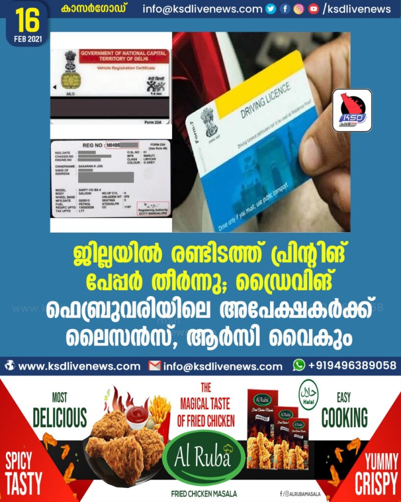 ജില്ലയിൽ രണ്ടിടത്ത് പ്രിന്റിങ് പേപ്പർ തീർന്നു; ഡ്രൈവിങ് ഫെബ്രുവരിയിലെ അപേക്ഷകർക്ക് ലൈസൻസ്, ആർസി വൈകും