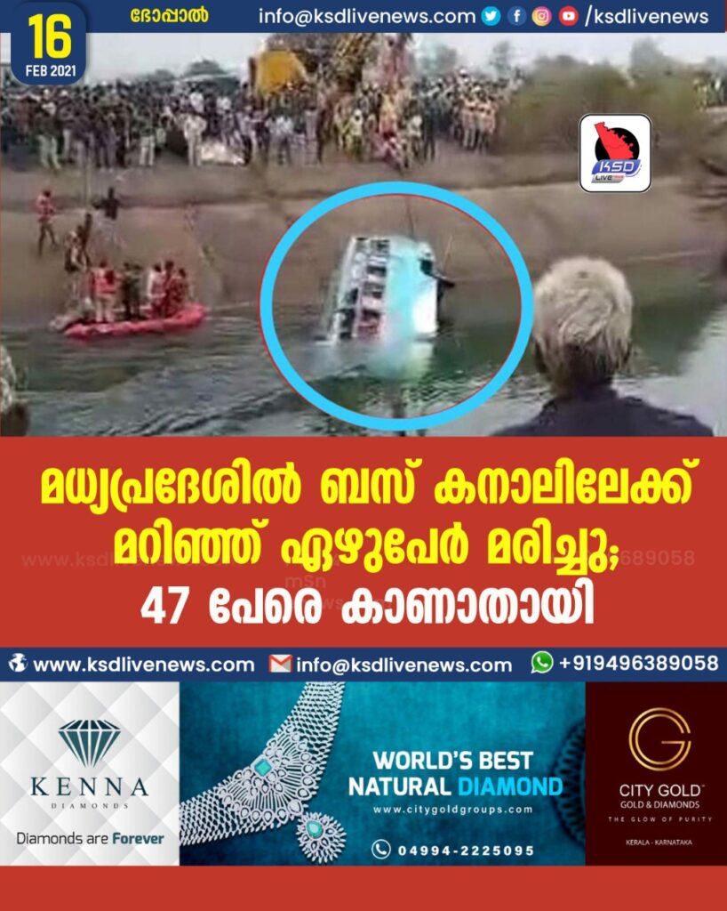 മധ്യപ്രദേശില് ബസ് കനാലിലേക്ക് മറിഞ്ഞ് ഏഴുപേര് മരിച്ചു; 47 പേരെ കാണാതായി