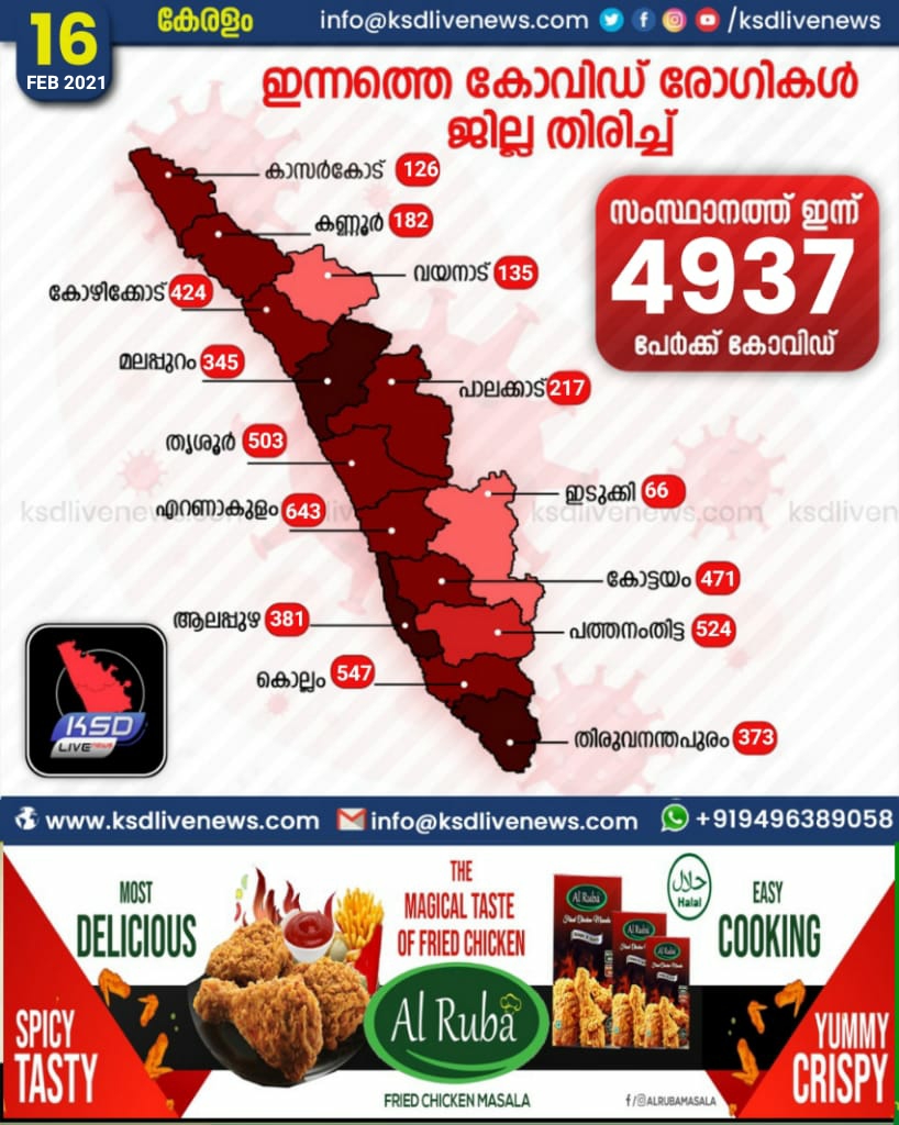 സംസ്ഥാനത്ത് ഇന്ന് കോവിഡ് സ്ഥിരീകരിച്ചവരുടെ ജില്ല തിരിച്ചുള്ള സ്ഥിതി വിവര കണക്ക്