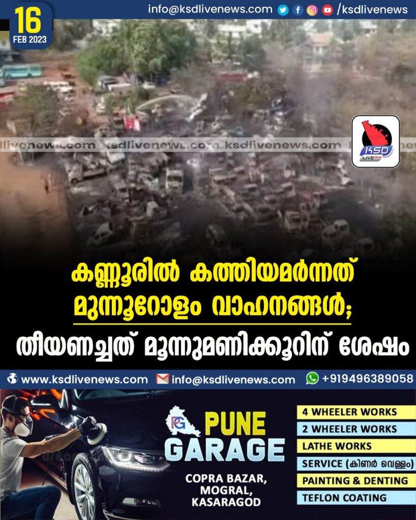 കണ്ണൂരില്‍ കത്തിയമര്‍ന്നത് മുന്നൂറോളം വാഹനങ്ങള്‍; തീയണച്ചത് മൂന്നുമണിക്കൂറിന് ശേഷം