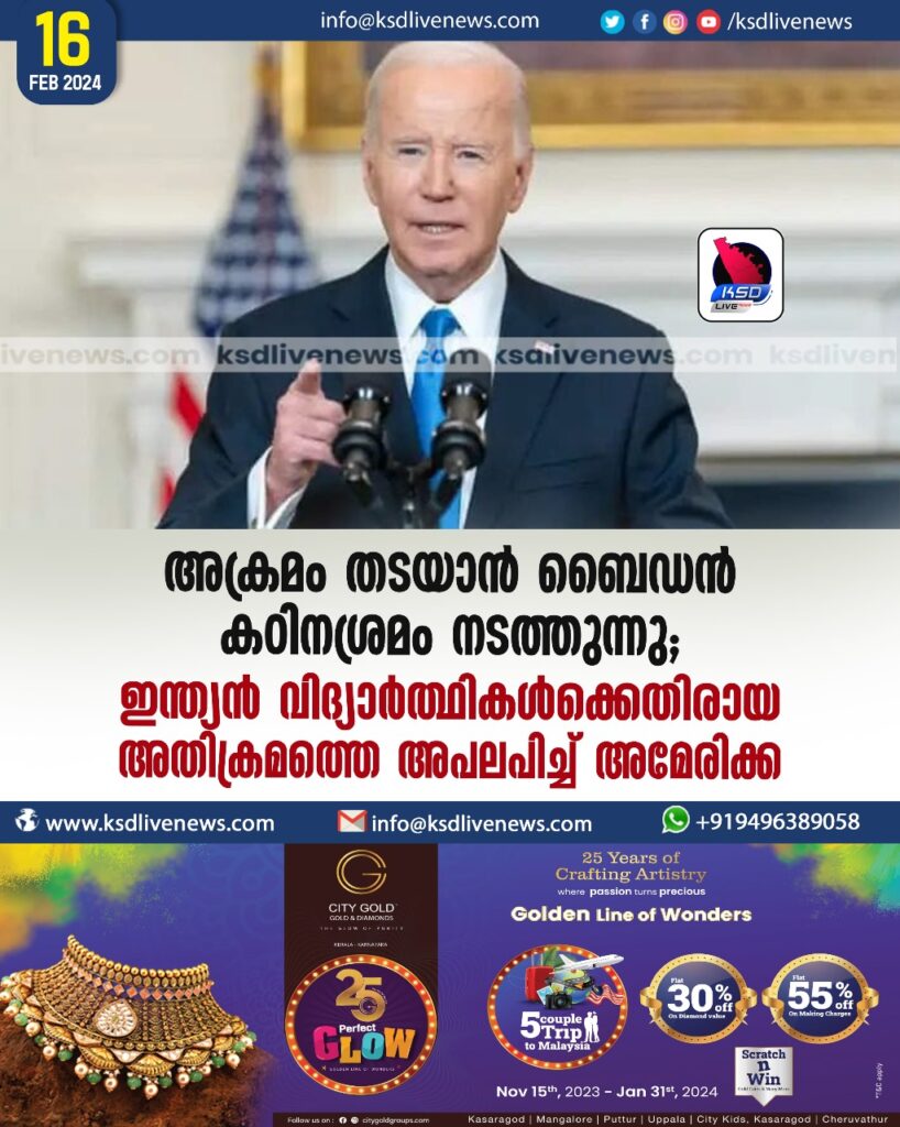 അക്രമം തടയാൻ ബൈഡൻ കഠിനശ്രമം നടത്തുന്നു’: ഇന്ത്യൻ വിദ്യാര്ത്ഥികള്ക്കെതിരായ അതിക്രമത്തെ അപലപിച്ച് അമേരിക്ക