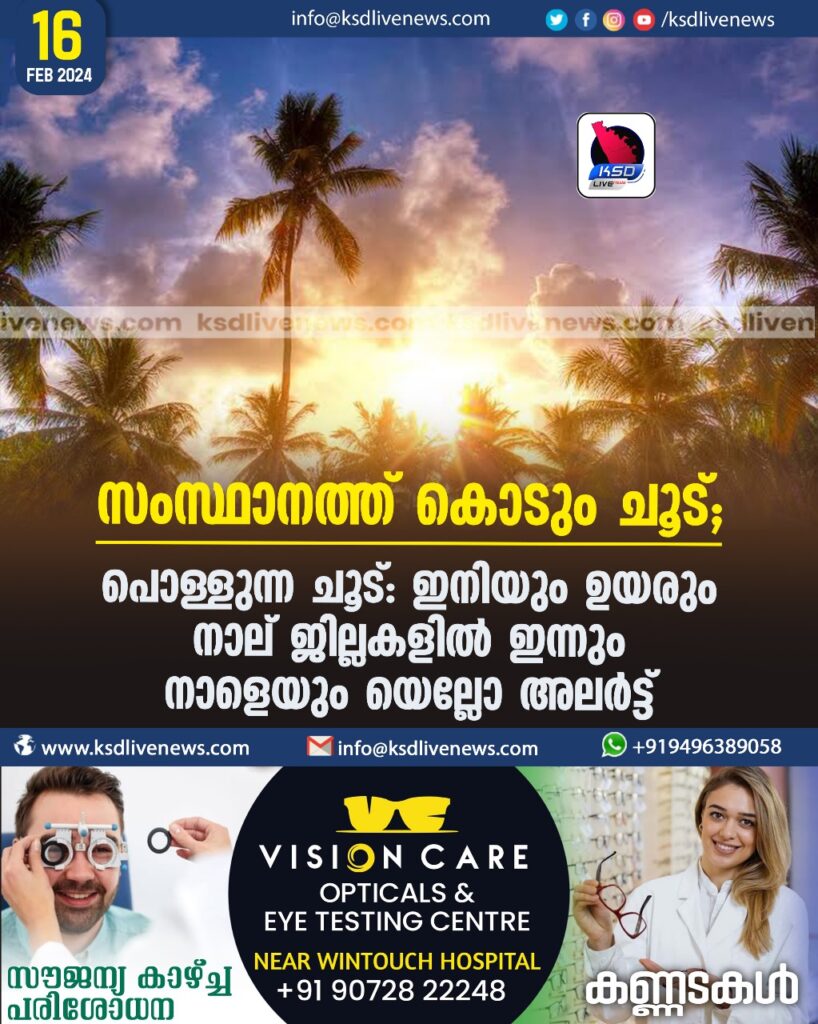 സംസ്ഥാനത്ത് കൊടും ചൂട്, പൊള്ളുന്ന ചൂട്: ഇനിയും ഉയരും, നാല് ജില്ലകളില്‍ ഇന്നും നാളെയും യെല്ലോ അലര്‍ട്ട്