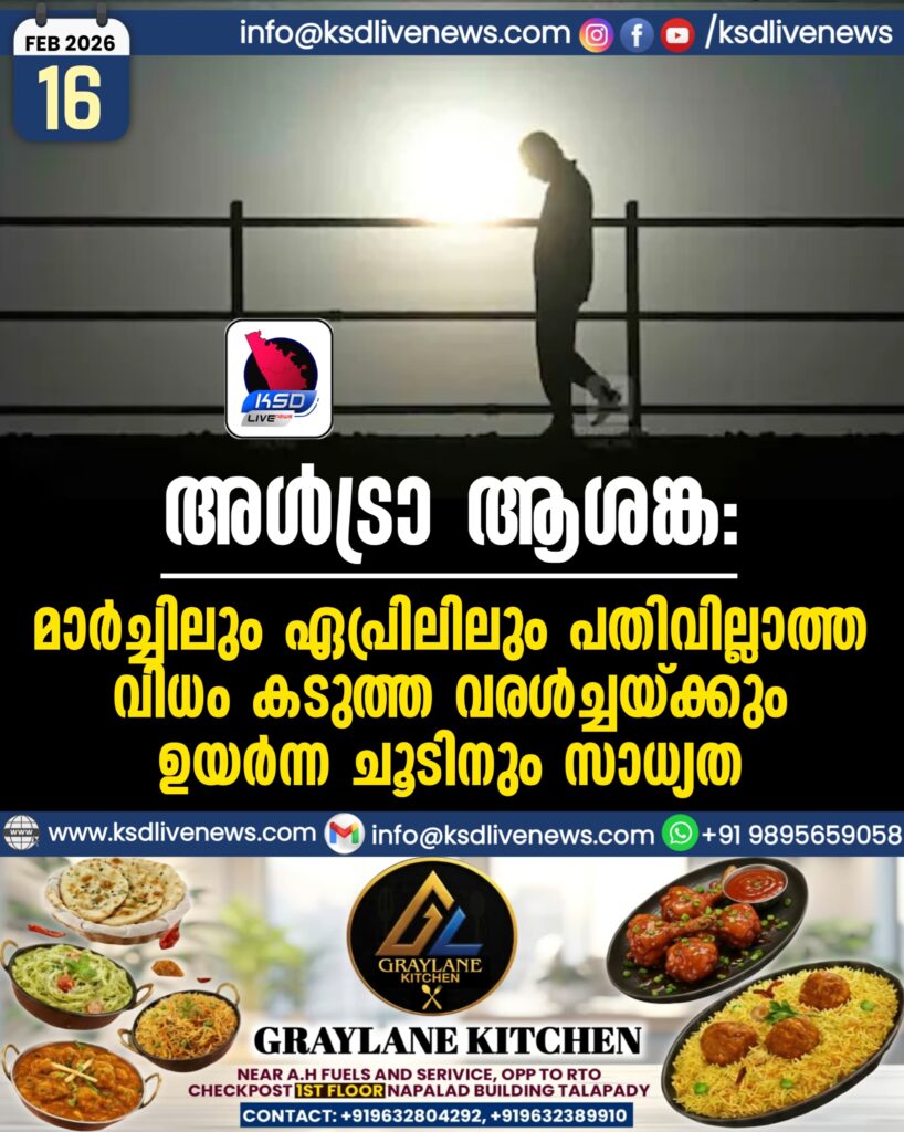 അൾട്രാ ആശങ്ക: മാർച്ചിലും ഏപ്രിലിലും പതിവില്ലാത്ത വിധം കടുത്ത വരൾച്ചയ്ക്കും ഉയർന്ന ചൂടിനും സാധ്യത