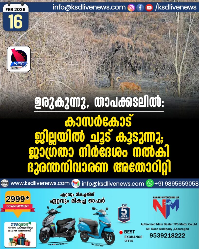 ഉരുകുന്നു, താപക്കടലിൽ; കാസർകോട് ജില്ലയിൽ ചൂട് കൂടുന്നു; ജാഗ്രതാ നിർദേശം നൽകി ദുരന്തനിവാരണ അതോറിറ്റി