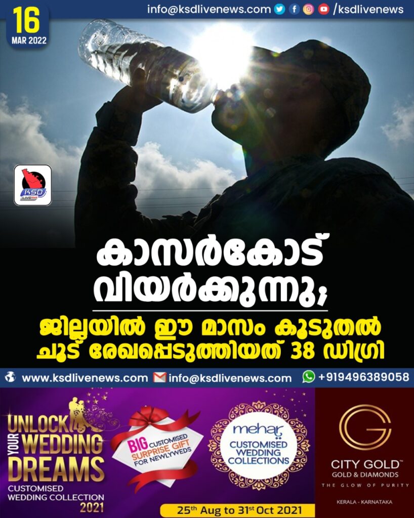 കാസർകോട് വിയർക്കുന്നു; ജില്ലയിൽ ഈ മാസം കൂടുതൽ ചൂട് രേഖപ്പെടുത്തിയത് 38 ഡിഗ്രി