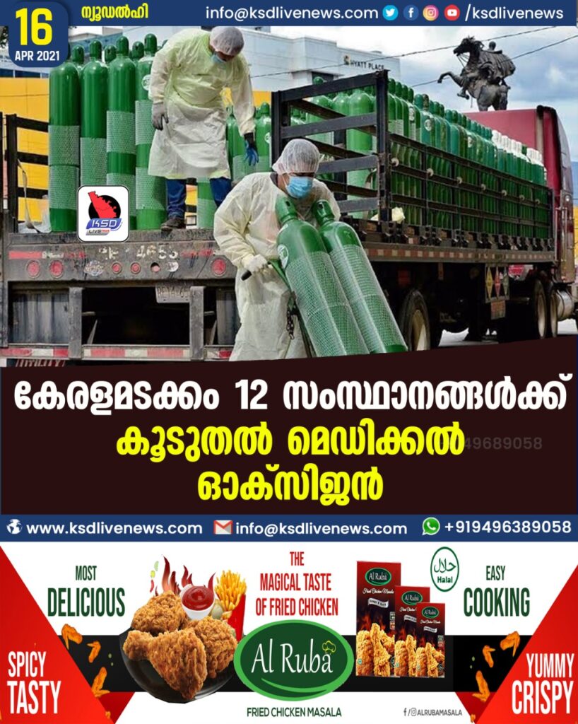 കേരളമടക്കം 12 സംസ്ഥാനങ്ങൾക്ക് കൂടുതൽ മെഡിക്കൽ ഓക്സിജൻ