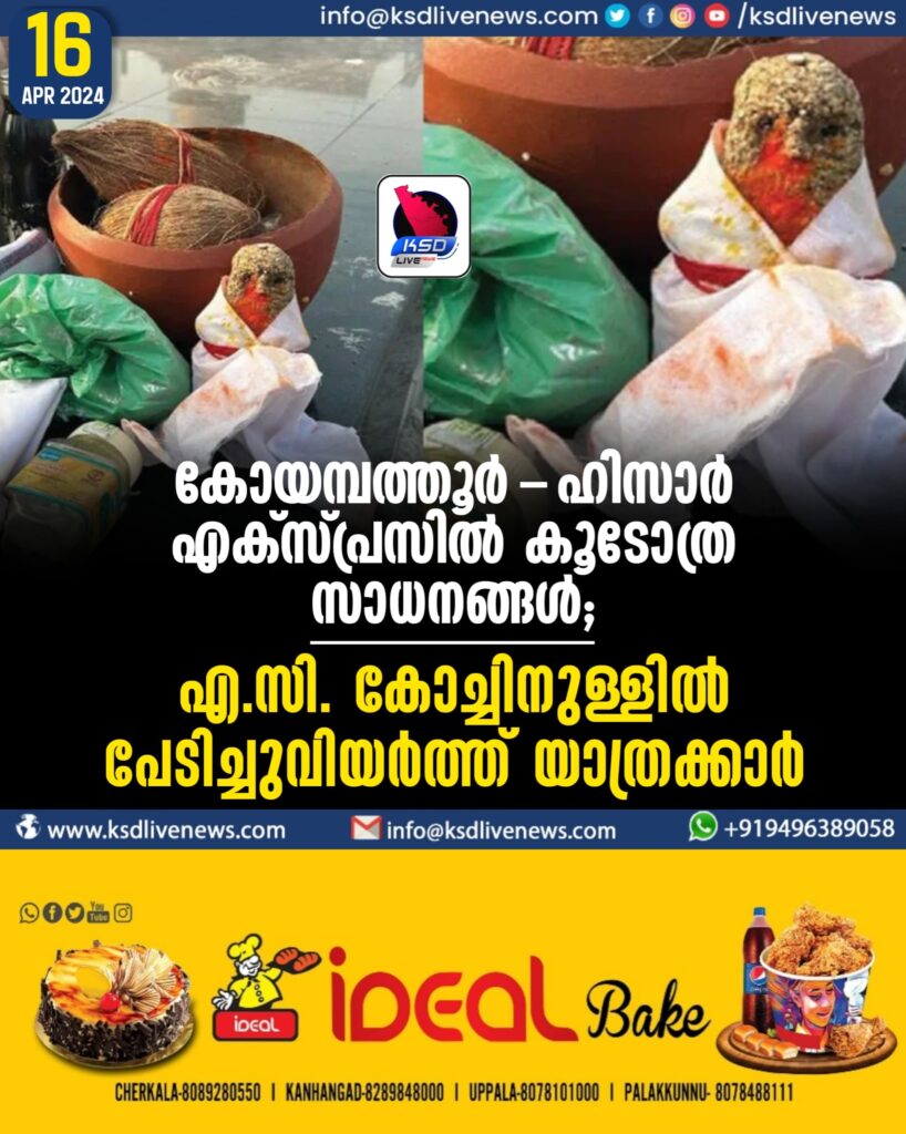 കോയമ്പത്തൂർ-ഹിസാർ എക്സ്പ്രസിൽ ‘കൂടോത്ര’ സാധനങ്ങൾ; എ.സി. കോച്ചിനുള്ളിൽ പേടിച്ചുവിയർത്ത് യാത്രക്കാർ