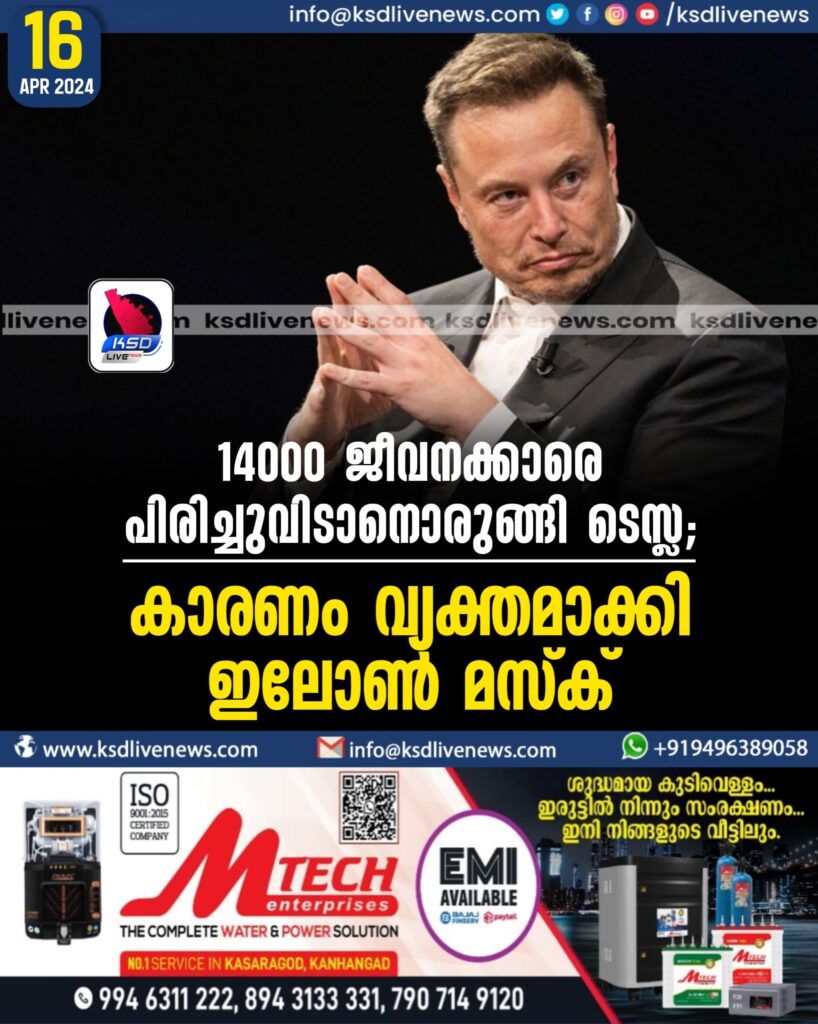14000 ജീവനക്കാരെ പിരിച്ചുവിടാനൊരുങ്ങി ടെസ്ല; കാരണം വ്യക്തമാക്കി ഇലോണ്‍ മസ്‌ക്