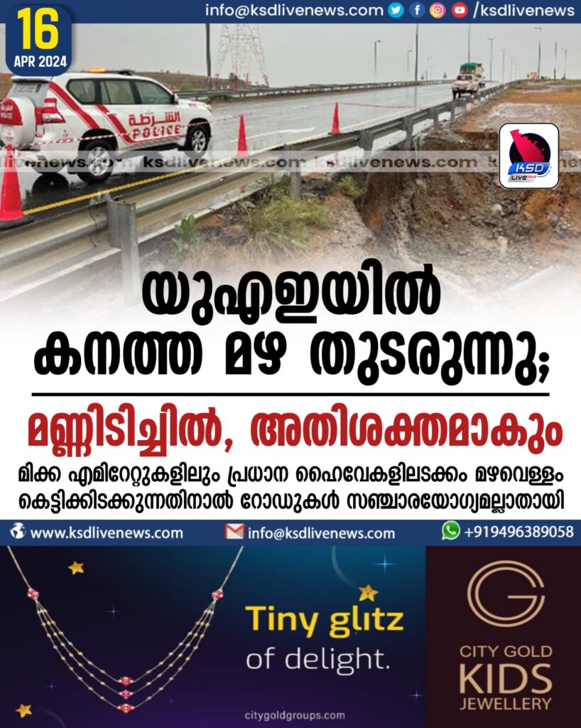 യുഎഇയിൽ കനത്ത മഴ തുടരുന്നു; മണ്ണിടിച്ചില്, അതിശക്തമാകും