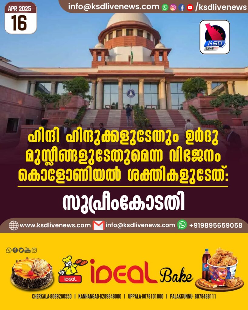 ഹിന്ദി ഹിന്ദുക്കളുടേതും ഉര്ദു മുസ്ലീങ്ങളുടേതുമെന്ന വിഭജനം കൊളോണിയല് ശക്തികളുടേത് – സുപ്രീംകോടതി