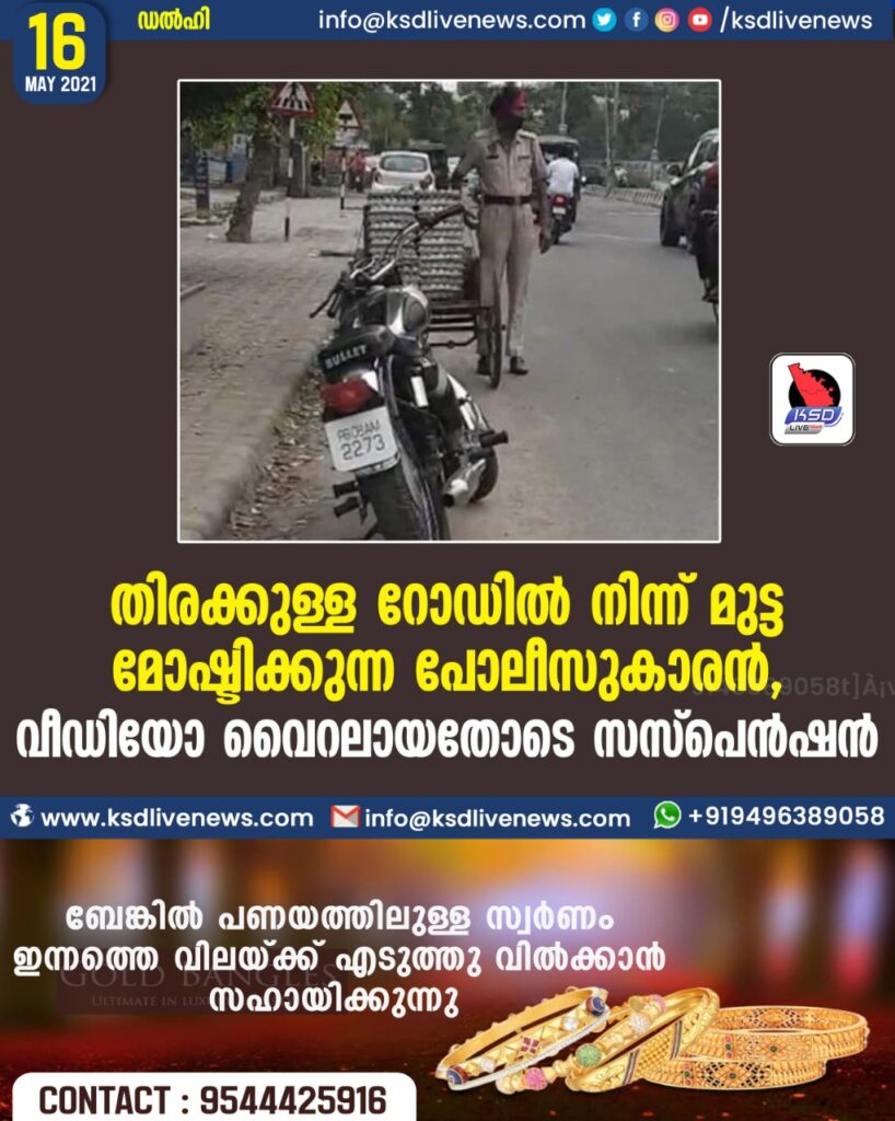 തിരക്കുള്ള റോഡില് നിന്ന് മുട്ട മോഷ്ടിക്കുന്ന പൊലീസുകാരന്, വീഡിയോ വൈറലായതോടെ സസ്പെന്ഷന്