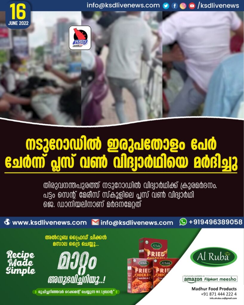 നടുറോഡിൽ ഇരുപതോളം പേർ ചേർന്ന് പ്ലസ് വൺ വിദ്യാർഥിയെ മർദിച്ചു