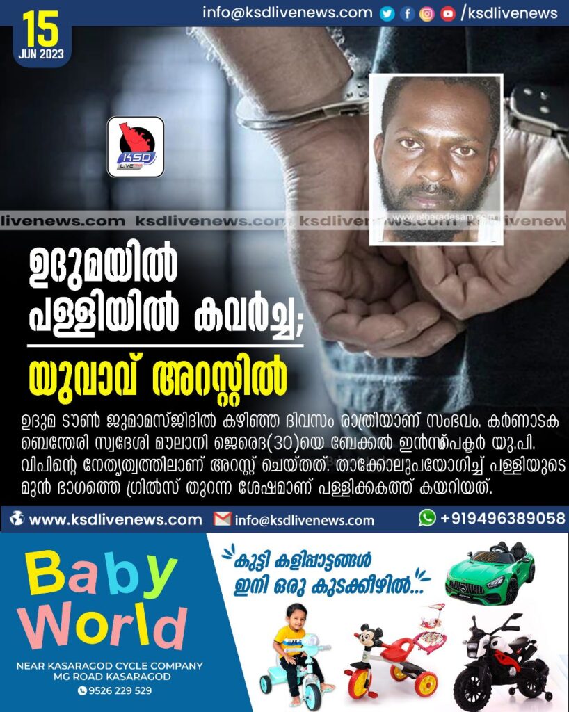 ഉദുമയില്‍ പള്ളിയില്‍ കവര്‍ച്ച; യുവാവ് അറസ്റ്റില്‍