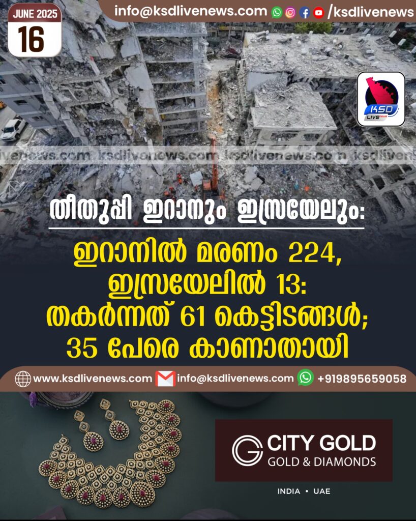 തീതുപ്പി ഇറാനും ഇസ്രയേലും; ഇറാനിൽ മരണം 224, ഇസ്രയേലിൽ 13: തകർന്നത് 61 കെട്ടിടങ്ങൾ, 35 പേരെ കാണാതായി