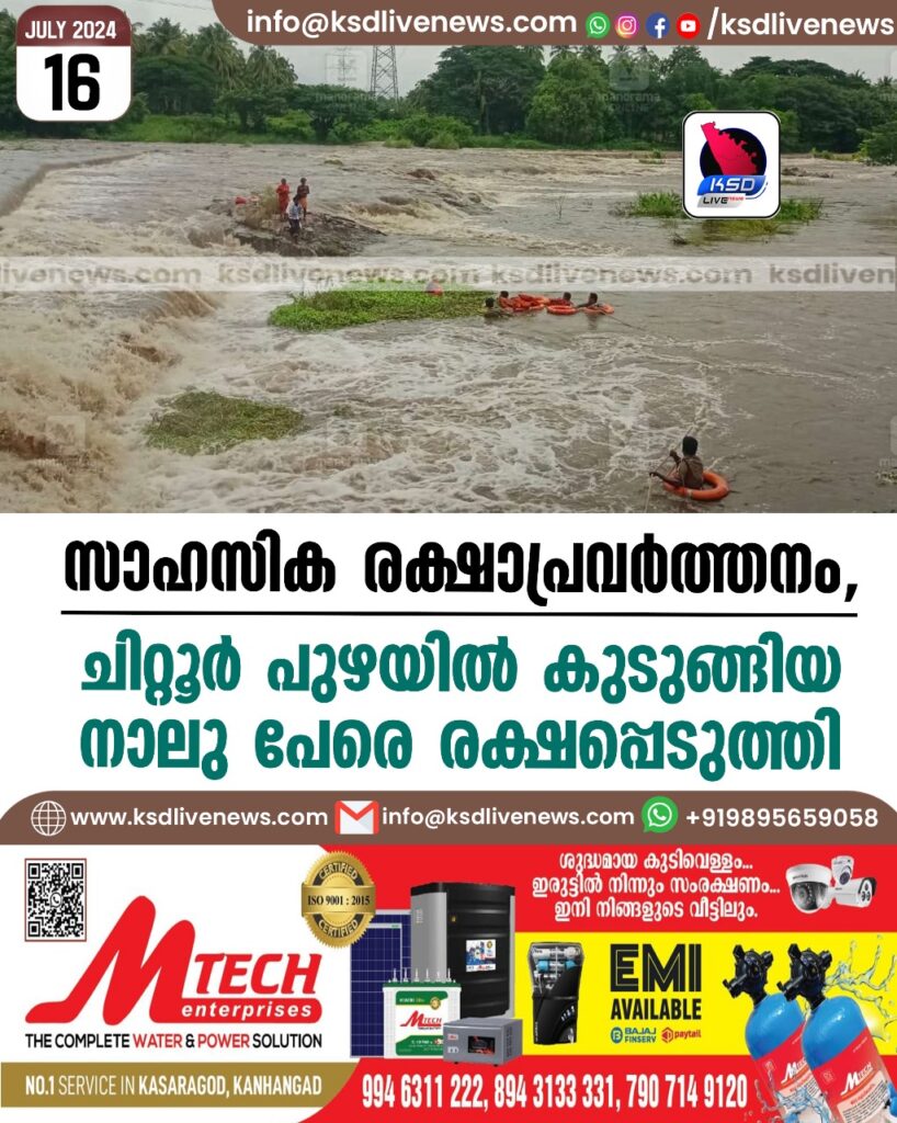 സാഹസിക രക്ഷാപ്രവർത്തനം, ചിറ്റൂർ പുഴയിൽ കുടുങ്ങിയ നാലു പേരെ രക്ഷപ്പെടുത്തി