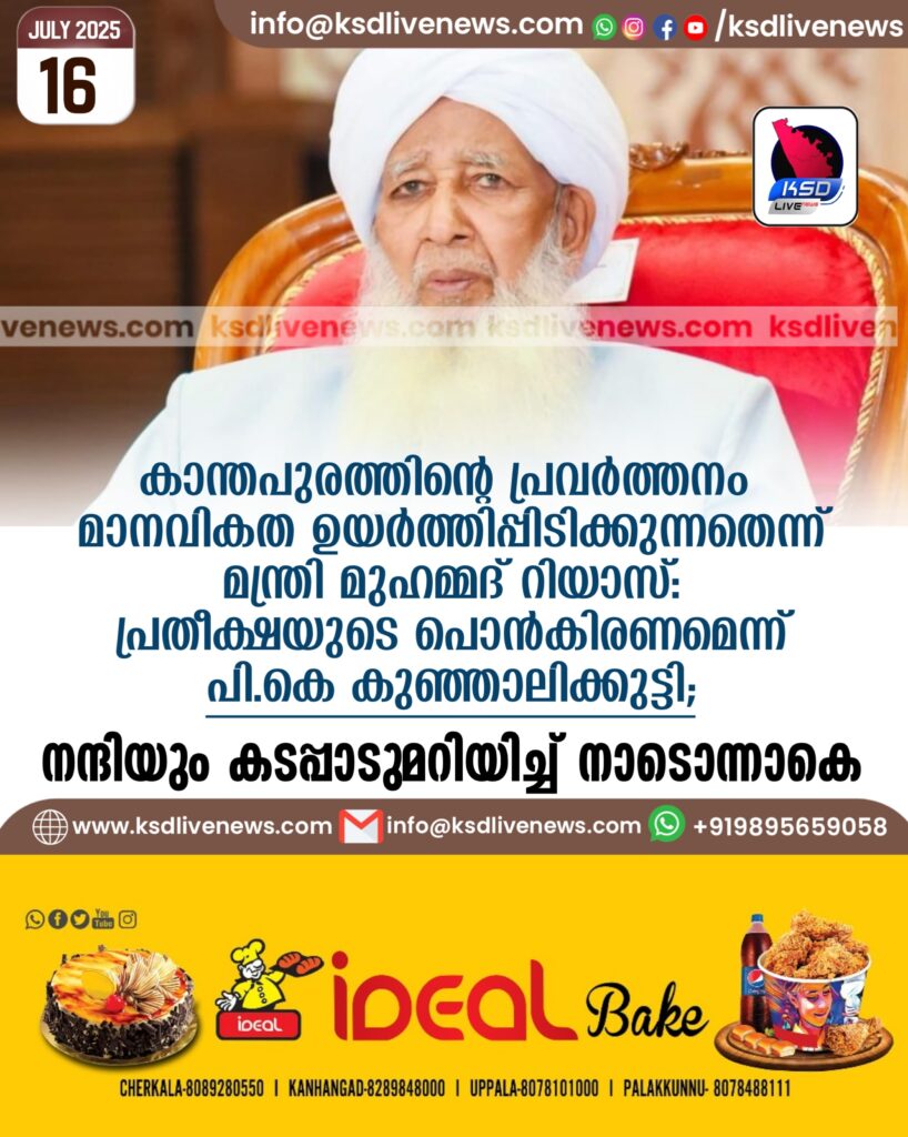 കാന്തപുരത്തിന്റെ പ്രവര്ത്തനം മാനവികത ഉയര്ത്തിപ്പിടിക്കുന്നതെന്ന് മന്ത്രി മുഹമ്മദ് റിയാസ്: പ്രതീക്ഷയുടെ പൊന്കിരണമെന്ന് പികെ കുഞ്ഞാലിക്കുട്ടി; നന്ദിയും കടപ്പാടുമറിയിച്ച് നാടൊന്നാകെ