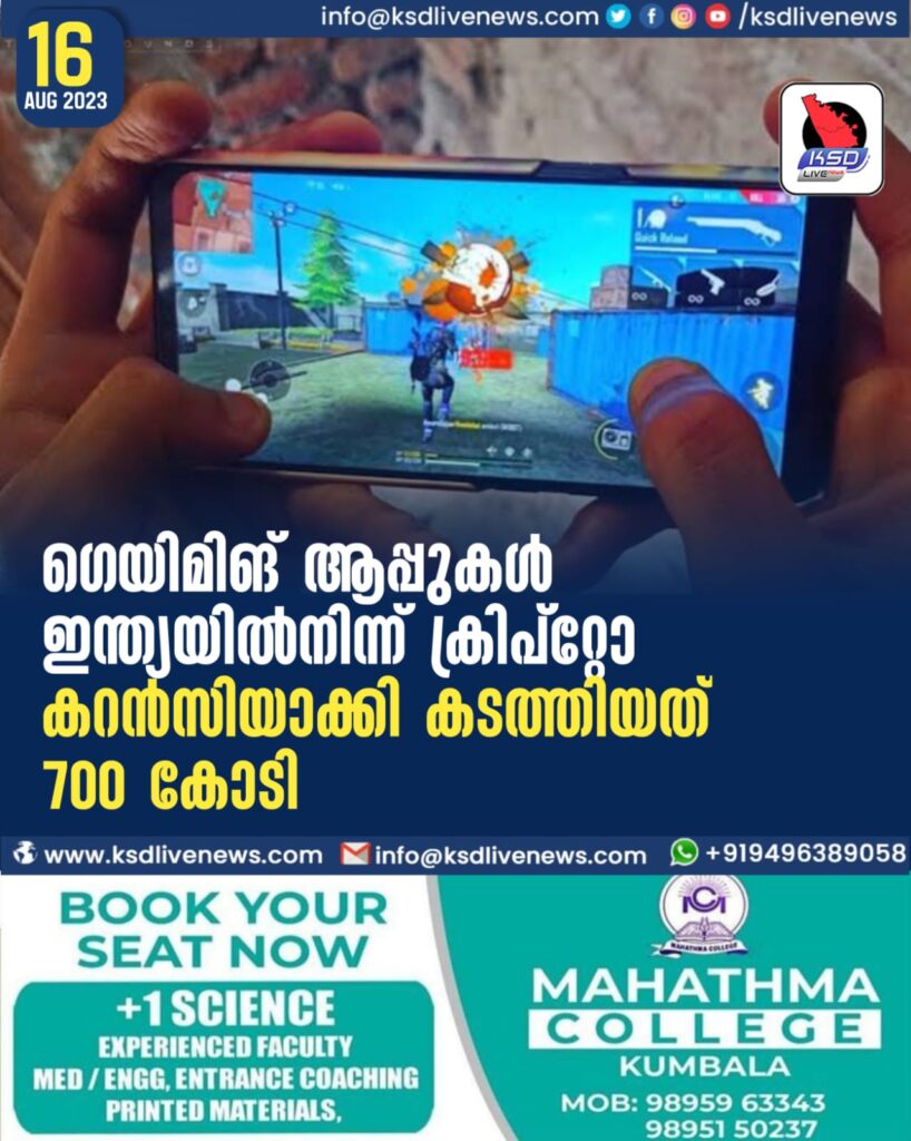 ഗെയിമിങ് ആപ്പുകൾ ഇന്ത്യയിൽനിന്ന് ക്രിപ്റ്റോ കറൻസിയാക്കി കടത്തിയത് 700 കോടി