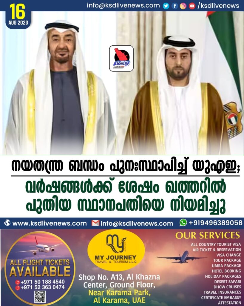 നയതന്ത്ര ബന്ധം പുനഃസ്ഥാപിച്ച് യുഎഇ; വര്ഷങ്ങള്ക്ക് ശേഷം ഖത്തറില് പുതിയ സ്ഥാനപതിയെ നിയമിച്ചു