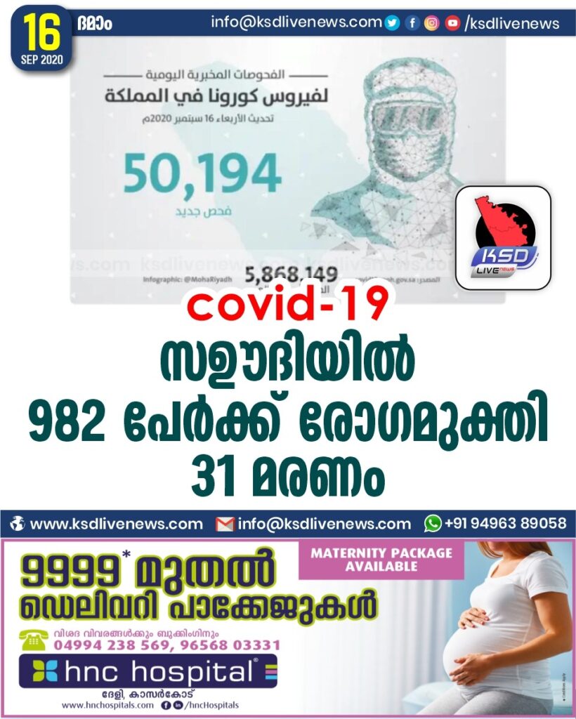 Covod_19 ; സഊദിയിൽ 982 പേർക്ക് രോഗമുക്തി ; 31 മരണം
