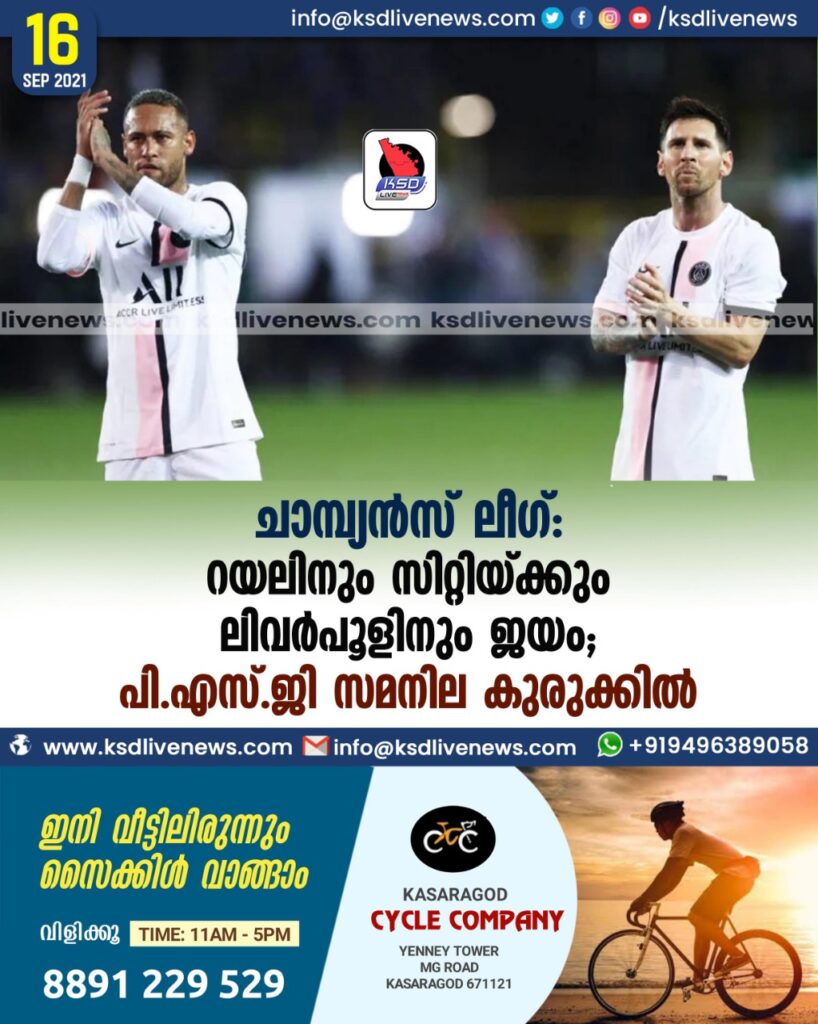 ചാമ്പ്യന്‍സ് ലീഗ്: റയലിനും സിറ്റിയ്ക്കും ലിവര്‍പൂളിനും ജയം, പി.എസ്.ജി സമനില കുരുക്കില്‍
