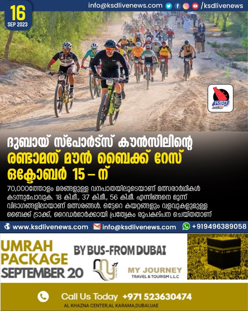 ദുബായ് സ്പോർട്സ് കൗൻസിലിന്റെ രണ്ടാമത് മൗണ്ടൻ ബൈക്ക് റേസ് ഒക്ടോബർ 15-ന്