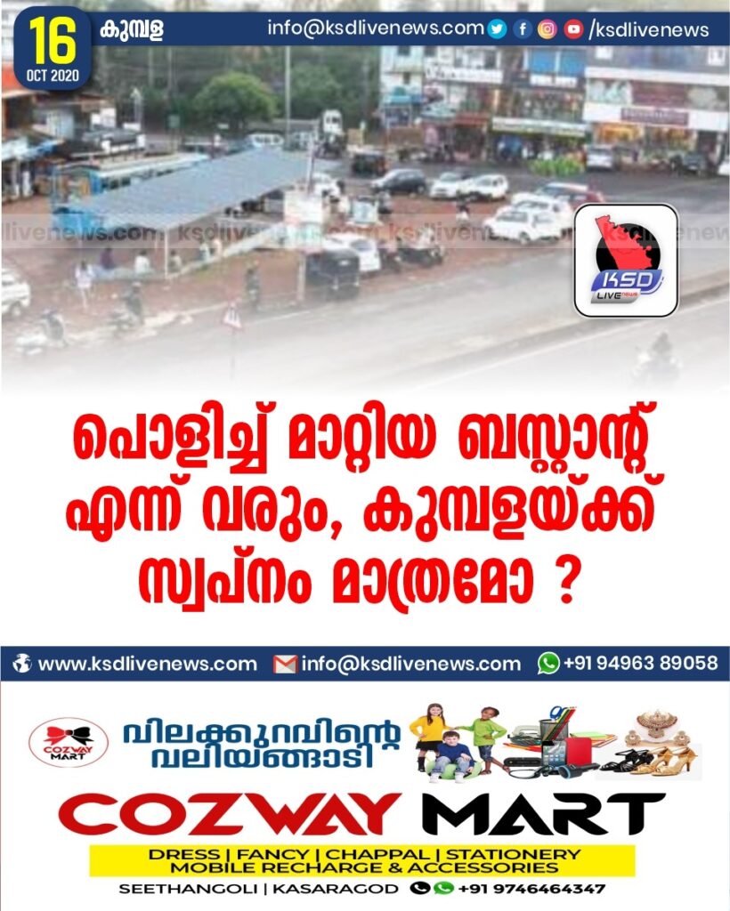 പൊളിച്ച് മാറ്റിയ ബസ്റ്റാന്റ് എന്ന് വരും , കുമ്പളയ്ക്ക് സ്വപ്നം മാത്രമോ ?