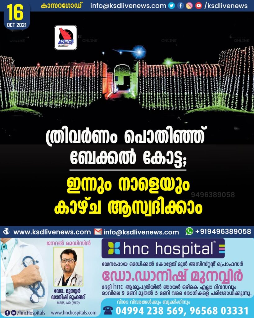 ത്രിവർണം പൊതിഞ്ഞ് ബേക്കൽ കോട്ട; ഇന്നും നാളെയും കാഴ്ച ആസ്വദിക്കാം