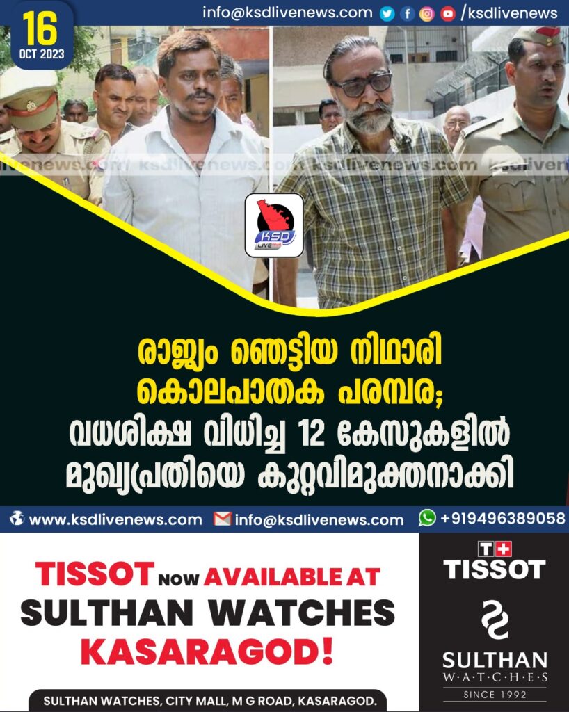 രാജ്യം ഞെട്ടിയ നിഥാരി കൊലപാതക പരമ്പര; വധശിക്ഷ വിധിച്ച 12 കേസുകളില് മുഖ്യപ്രതിയെ കുറ്റവിമുക്തനാക്കി
