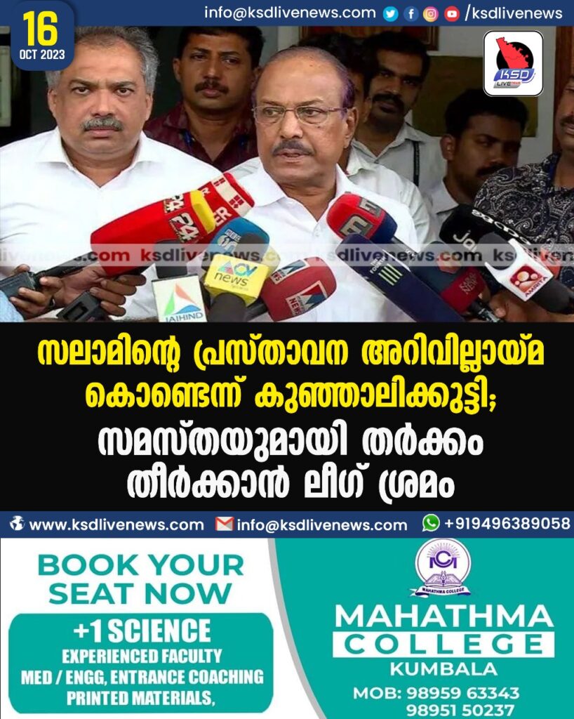 സലാമിന്റെ പ്രസ്താവന അറിവില്ലായ്മ കൊണ്ടെന്ന് കുഞ്ഞാലിക്കുട്ടി; സമസ്തയുമായി തര്ക്കം തീര്ക്കാൻ ലീഗ് ശ്രമം
