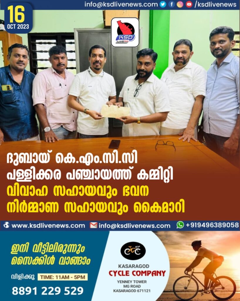ദുബായ് കെഎംസിസി പള്ളിക്കര പഞ്ചായത്ത് കമ്മിറ്റി വിവാഹ സഹായവും ഭവന നിർമ്മാണ സഹായവും കൈമാറി