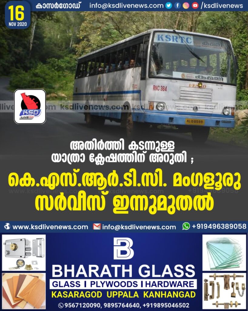 അതിർത്തി കടന്നുള്ള യാത്രാ ക്ലേഷത്തിന് അറുതി ; കെ.എസ്.ആർ.ടി.സി. മംഗളൂരു സർവീസ് ഇന്നുമുതൽ