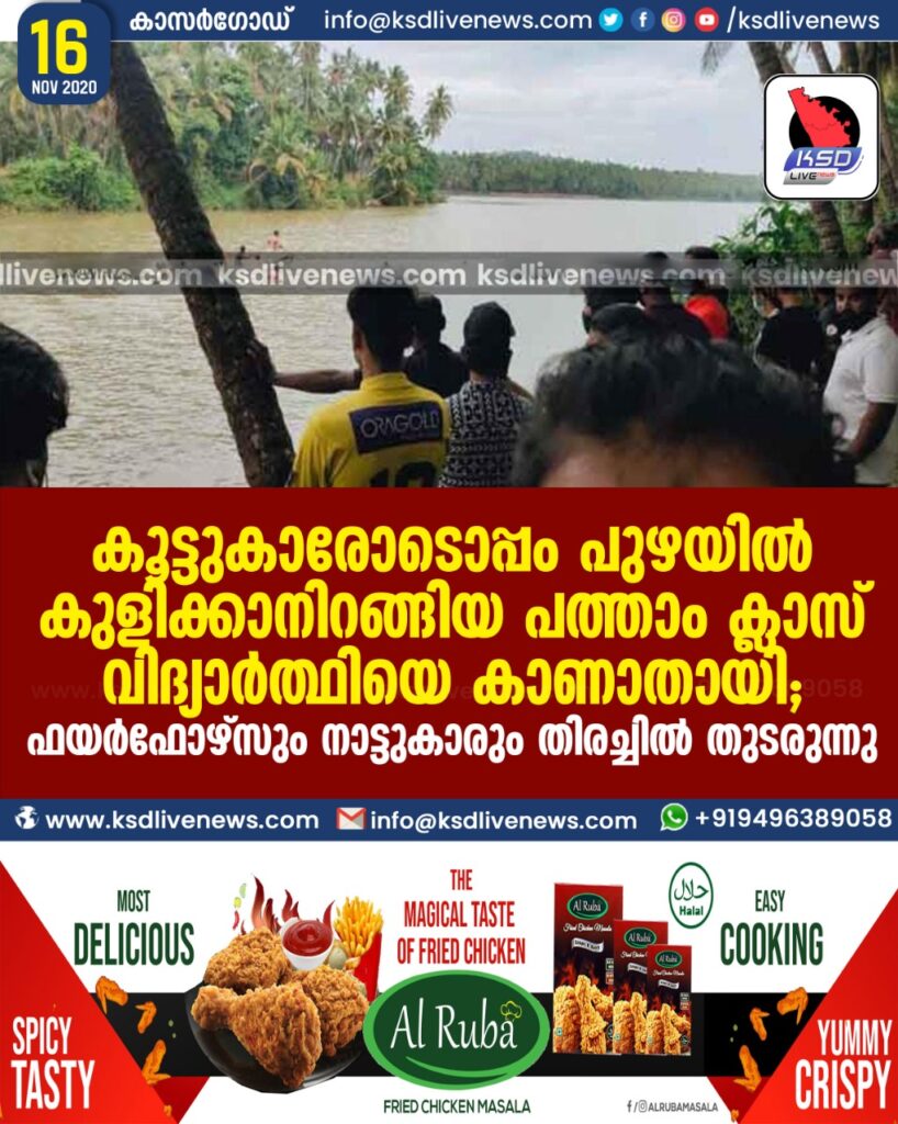 കൂട്ടുകാരോടൊപ്പം പുഴയില്‍ കുളിക്കാനിറങ്ങിയ പത്താം ക്ലാസ് വിദ്യാര്‍ത്ഥിയെ കാണാതായി ; ഫയര്‍ഫോഴ്‌സും നാട്ടുകാരും തിരച്ചില്‍ തുടരുന്നു