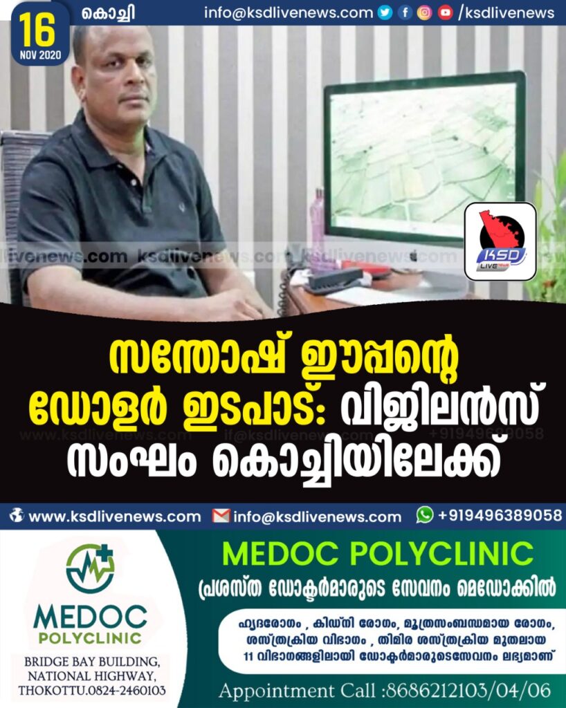 സന്തോഷ് ഈപ്പന്റെ ഡോളർ ഇടപാട് : വിജിലൻസ് സംഘം കൊച്ചിയിലേക്ക്