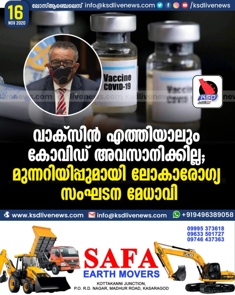 വാക്സിൻ എത്തിയാലും കോവിഡ് അവസാനിക്കില്ല ; മുന്നറിയിപ്പുമായി ലോകാരോഗ്യ സംഘടന മേധാവി