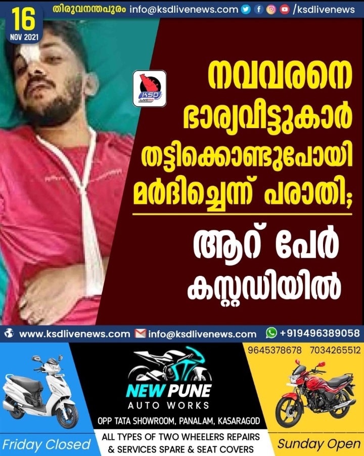 നവവരനെ ഭാര്യവീട്ടുകാര് തട്ടിക്കൊണ്ടുപോയി മര്ദിച്ചെന്ന് പരാതി; ആറ് പേര് കസ്റ്റഡിയില്